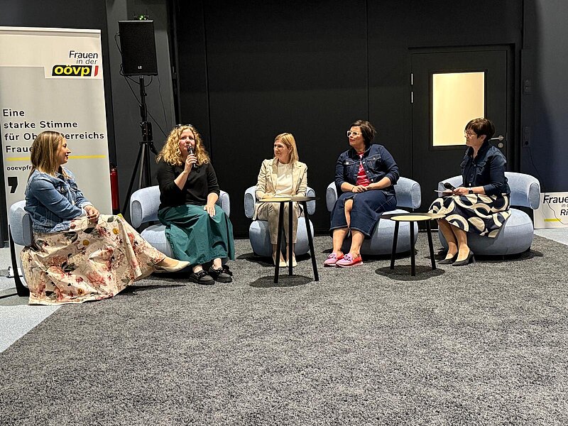 Zum Abschluss vertiefte eine hochkarätig besetzte Talkrunde die Themen des Abends. Gemeinsam diskutierten Melanie Baumgartner, Cornelia Pöttinger, Landesobfrau der Frauen in der OÖVP, sowie Martina Hamedinger, Vice President HR der FACC AG und Mitgründerin des Netzwerks „Wings for Women“, über Perspektiven, Herausforderungen und zukünftige Möglichkeiten gemeinsamer Kooperationen.